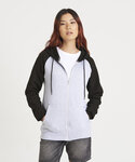 Twin-needle stitching detail. Contrast raglan sleeves. Double fabric hood. YKK plastic zip. Contrast flat lace drawcords. Spilt kangaroo pocket. Ribbed cuffs and hem. Soft cotton faced fabric creates ideal printing surface. Simple tear-out label makes it perfect for rebranding. Brushed inner fleece. Washing Instructions Machine wash 30 degrees. Do not bleach. Tumble dry possible at low heat. Cool Iron. Do not dry clean. Wash dark colour separately.