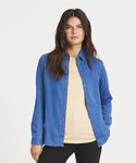 Classic long sleeve light weight denim shirt available in 3 colours and girlie fit. Features include front button placket, button detail at cuffs and back yoke. Fashion fit. Turned hem with single needle stitch detail. Twin needle contrast stitching at side seams, sleeves and cuffs. Single needle contrast at armholes collar and front placket. 2 button placket at cuff. Modern narrow collar. Long sleeve. Yoke at back shoulder. No pockets for maximum embellishment area. Washing Instructions Machine Wash at 30°. Do Not Bleach. Tumble dry low. Low Iron setting. Dry Clean.