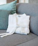 Traditional, soft, textured waffle robe with deep patch pockets and kimono styling. Washing Instructions Do not bleach. Tumble dry low. 1 dot iron. Do not dry clean. Wash at 40 degrees synthetic. Wash like colours together. Do not use fabric conditioner.
