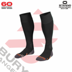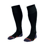 These knee length socks from Stanno are made of ‘high stretch’ polyester, for the best fit. Shin area is extra stretchable for shinguard placement. Mesh area at rear of sock for extra breathability. Around the ankle the sock has a protective impact zone. And to prevent scouring, and therefore blisters, the sock has a flat seem and a reinforced heel, sole and toe. Due to the double elasticated cuff the sock stays in place. These anatomically shaped socks are provided with a left/right fitting indicator.