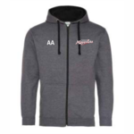 Heather Grey & Black zipped hoodie with printed initial, community coach backprint and embroidered badge.
